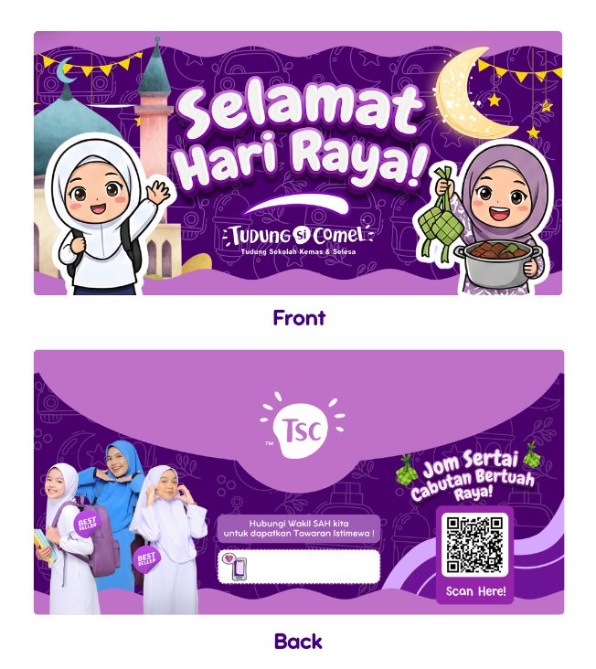 Sampul Raya kali ni bukan sekadar sampul biasa, tapi ia adalah “Sampul Raya Berduit”! Setiap sampul dilengkapi dengan QR Code khas untuk pelanggan berpeluang memenangi Duit Raya melalui Kempen Cabutan Bertuah Mega Raya.